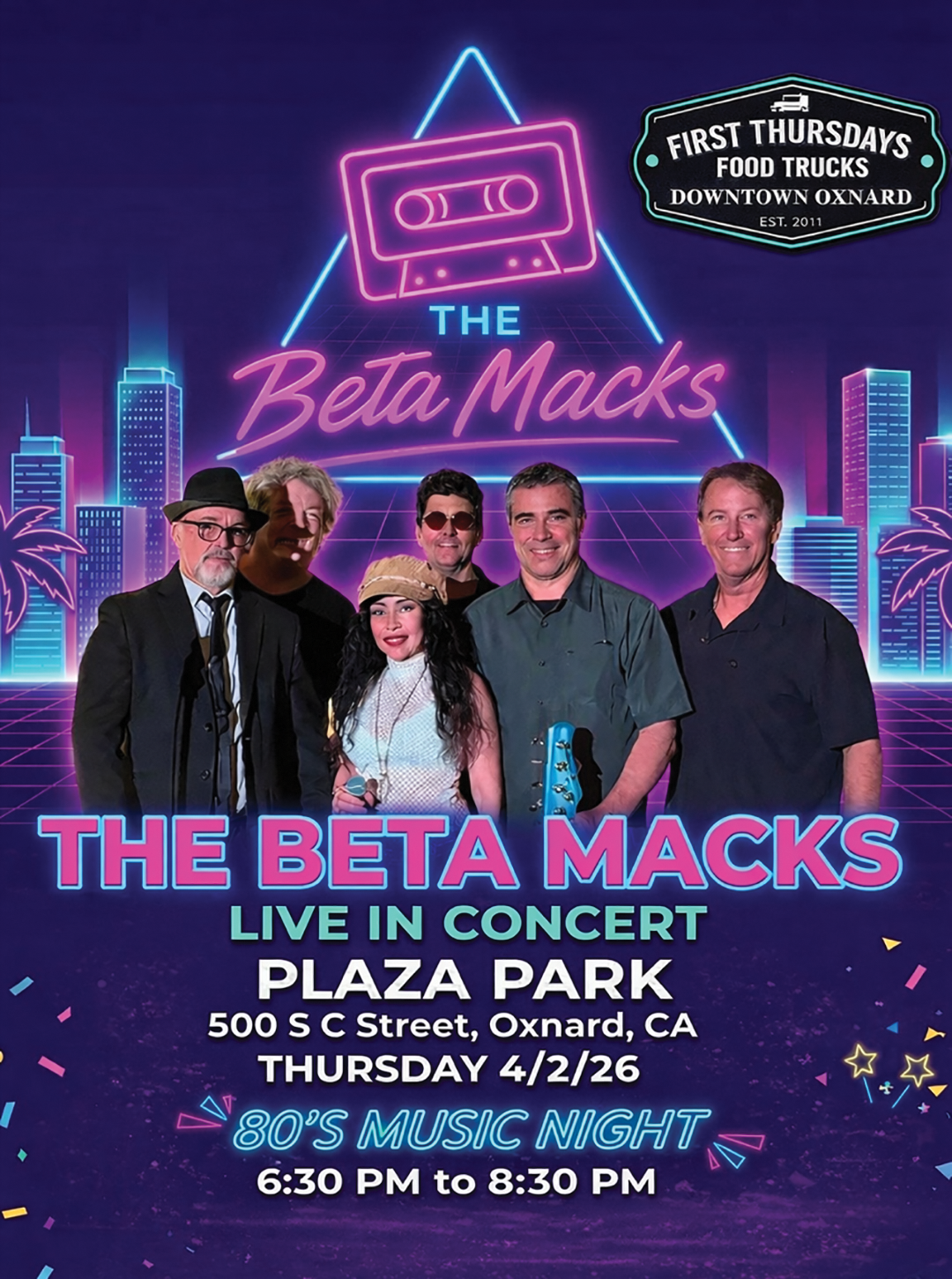 First Thursdays Food Trucks rolls back into Plaza Park on April 2nd, launching the 2026 season with an all-out, big hair, new wave, neon night, ’80s-throwback party featuring live music by The Beta Macks. And don’t forget to hit up the makers market – imagine it like The Galleria Mall – you’ll see all your friends there!